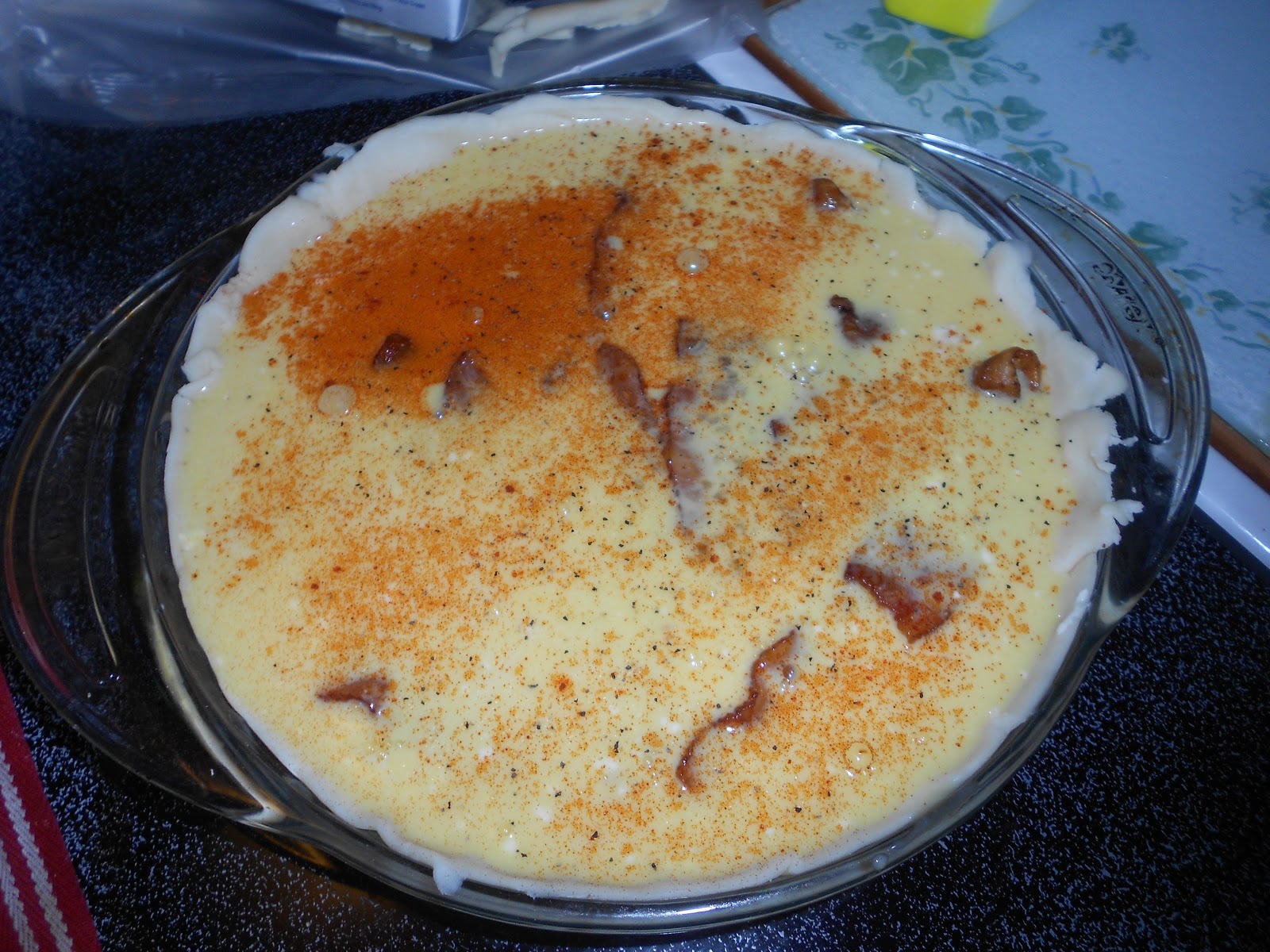 5. Pour Egg Mixture over the bacon. Sprinkle with Paprika -